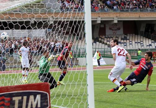 Това е гол номер 11 за него този сезон, но минута по-късно можеше да остави гостите с човек по-малко, след като удари без топка Давиде Астори. Интересното е, че жълт картон получи защитникът, а не нападателят на Рома. Следващите минути Каляри имаха претенции за дузпа, но такава не бе отсъдена, по-скоро правилно.