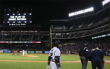 Според новия прочит на правилата в Мейджър лийг обаче топката не се счита за уловена, докато филдерът не покаже сигурен захват с голата ръка. Затова и мениджърът на Сиатъл Лойд Макклендън моментално оспори отсъдения аут на хоума и поиска точката да бъде призната - нещо, което се случи след 3-минутно преглеждане на ТВ записа.