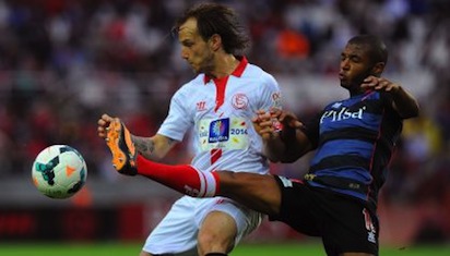 Севиля разби гостуващия Гранада с 4:0 в среща от 34-ия кръг на Примера дивисион. По този начин тимът от Андалусия постигна трета поредна победа в първенството и се утвърди на петото място в класирането. Севилци дори имат шансове да атакуват четвъртата позиция, даваща право на участие в Шампионската лига. В момента те изостават с 3 точки от Атлетик Билбао, който тази вечер гостува на Барселона.