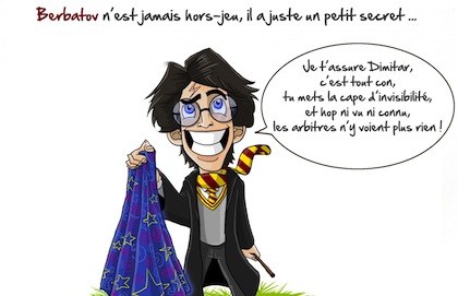 Димитър Бербатов обича да рисува карикатури, но, откакто е в Монако, самият той често се превръща в обект на вдъхновение за другите да творят. Поредният шарж е посветен на гола-шедьовър, с който българският нападател донесе победата срещу Ница (1:0) в неделя.
