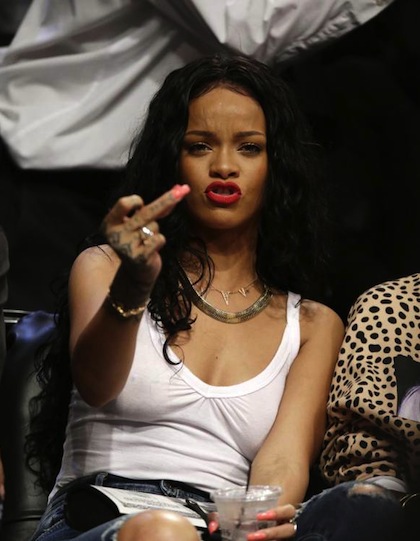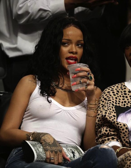 Поп дивата Риана отново скандализира обществото. Този път красавицата се появи с доста провокативно облекло на баскетболен мач в Ню Йорк. Певицата не носеше сутиен и остави феновете спокойно да се наслаждават на прелестите й и нейния пиърсинг, който прозираше под белия потник.