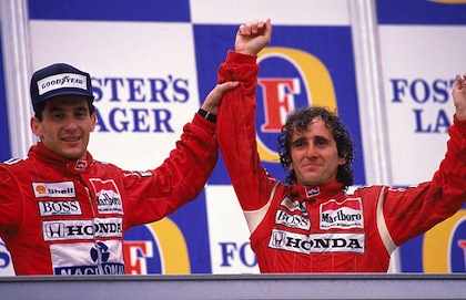 Голямата вражда тръгва в Сан Марино през 1989. Тогава след рестарт на състезанието Сена изпреварва Прост, а според французина преди старта двамата са се разбрали да не се изпреварват. След това идва състезанието на "Сузука", където Прост не му дава място и го блъска. Година по-късно, когато вече Ален е във Ферари, Сена прави същото. И двамата са бесни един на друг. Но целият яд и омраза между тях, продължила повече от 6 години, приключва, когато Прост се оттегля от Формула 1 след титлата си с Уилямс през 1993. Оттогава големите съперници стават приятели. Това е наистина невероятно. Защото преди това Сена даже отказва да спомене името на Прост, да не говорим да му стисне ръката. Ален пък кара Уилямс да сложат клауза в договора, че Сена няма да му е съотборник.