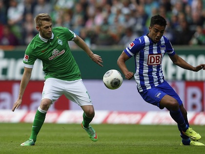 Отборът на Вердер (Бремен) надигра с 2:0 у дома Херта (Берлин) в среща от предпоследния 33-и кръг на германското първенство. Автор и на двете попадения в мача стана Аарон Хънт през второто полувреме. Той откри резултата в 49-ата минута, а в добавеното време "подпечата" победата на тима, воден от Робин Дут.