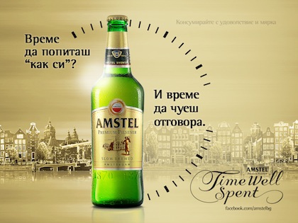 Има кой да ни напомни, че единствено времето, което влагаме в най-важните нещa и хора, е добре прекарано. Amstel Premium Pilsner изповядва тази философия не само като рекламна стратегия, но и като подход към продукта.  Характерният му освежаващ и балансиран вкус е резултат от изключителното майсторство и внимание с което пивоварите го създават. Тайната е в това, че дават на бирата нужното време, за да получим ние идеалната глътка.