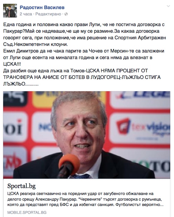 Пакурар прибира умопомрачителна сума от ЦСКА (вижте документите)