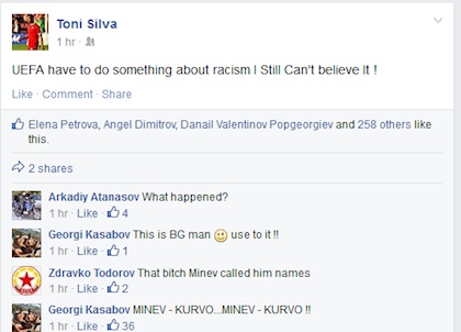 "УЕФА трябва да направи нещо срещу расизма. Още не мога да повярвам", написа Силва в профила си във "Фейсбук".