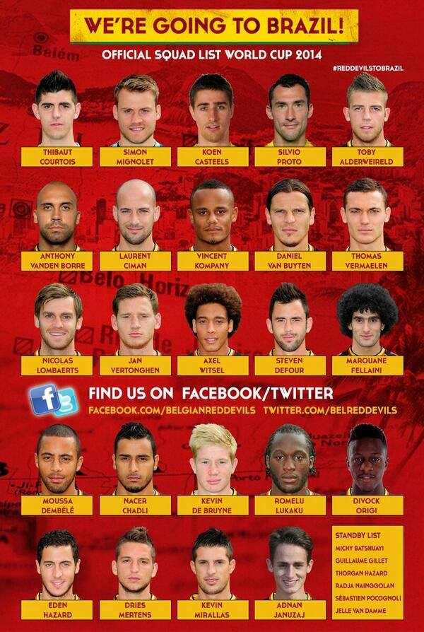 Резерви: Раджа Найнголан (Рома), Себастиан Поконьоли (Хановер 96), Торган Азар (Зюлте Варегем), Гийом Жийе, Миши Бачуаи, Йеле Ван Дам (Стандард Лиеж)