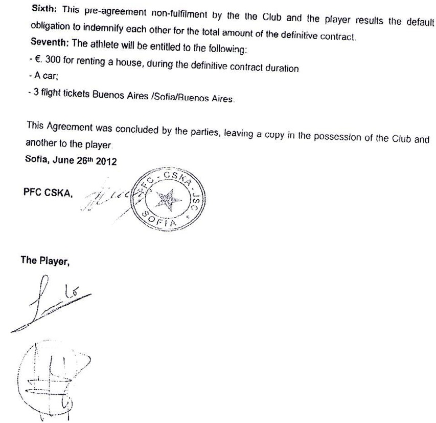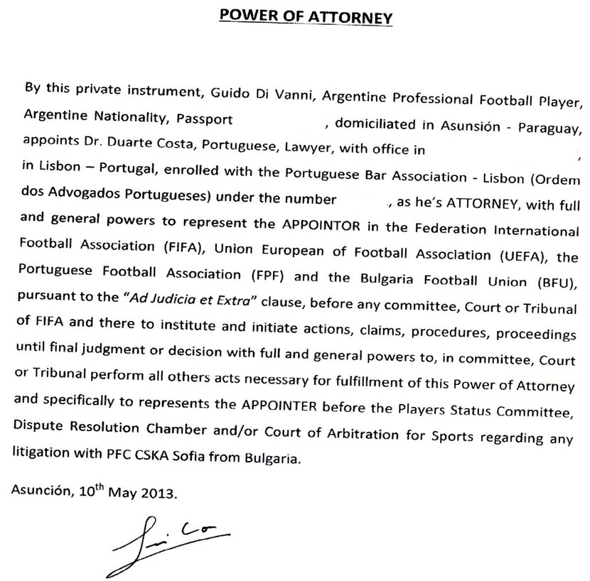 Подписът на Ди Вани под пълномощното, който според ръководството на ЦСКА е фалшифициран: