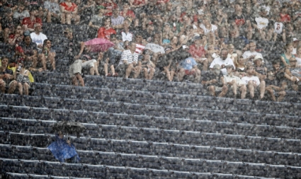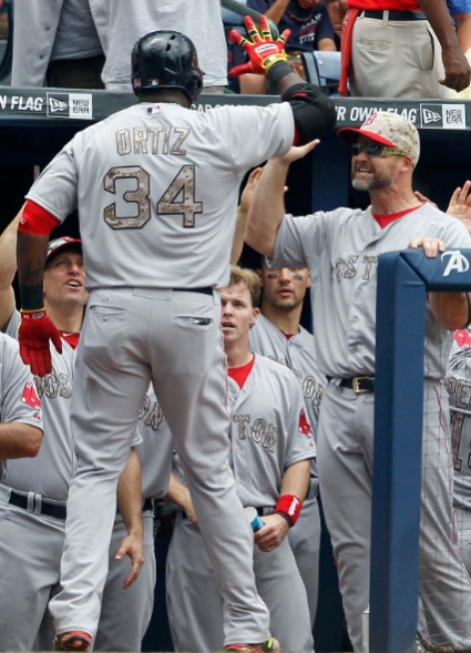 Напук на отчайващото представяне на питчера Клей Букхолц, пуснал рекордните в кариерата си 8 бази за боли за 3+ ининга, напук на изоставането с 5 точки след 4 ининга и дори напук на дъжда, заради който мачът бе прекъснат за час и половина, Бостън Ред Сокс победи Атланта Брейвс с 8:6 като гост и сложи край на срамната поредица от 10 загуби в МЛБ. В спасител за шампионите се превърна вездесъщият Давид Ортис, допринесъл с 4 RBI.