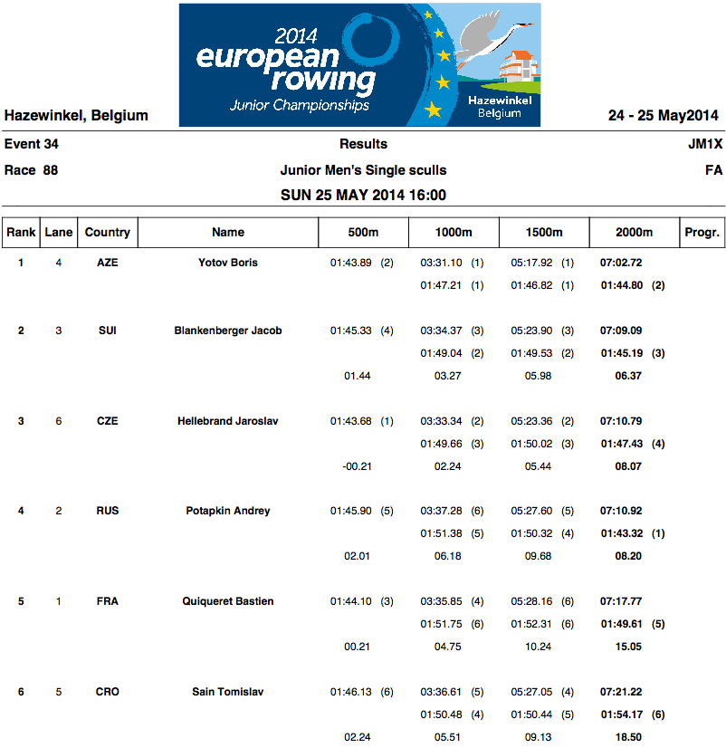 Българинът Борис Йотов, който се състезава за Азербайджан, спечели титлата на скиф при юношите с време 7:02.72 минути.