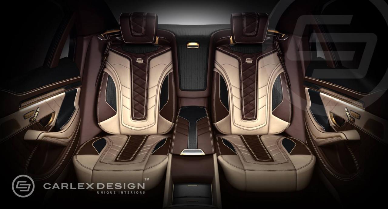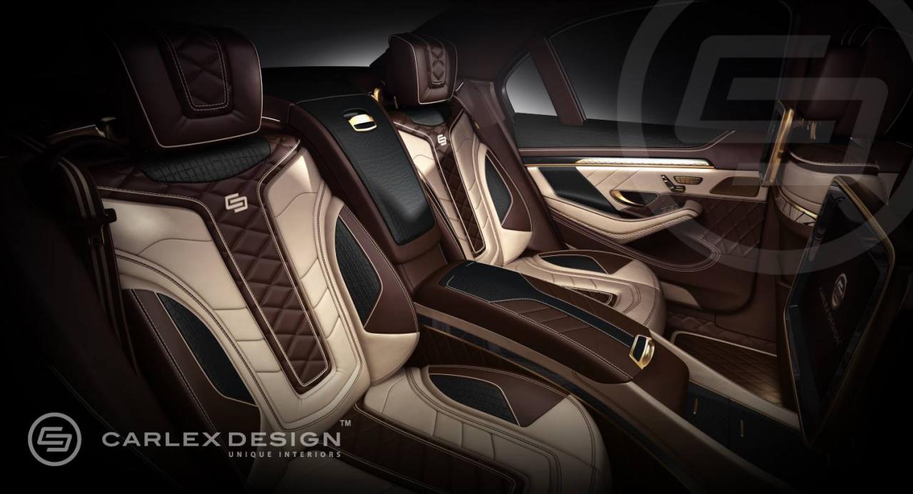 Новият S-Class е една от най-луксозните коли на пазара в момента, но от Carlex Design са решили, че в него има място за още блясък. Затова тунерите  покрили всички метални елементи в купето с 24 каратово злато - по копчетата, дръжките на вратите, емблемата и дори бутоните по волана.