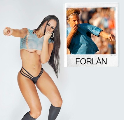 Наскоро атрактивната брюнетка засне забавна и много секси фотосесия, в която с позите си имитира едни от най-големите звезди на световния футбол - бразилеца Неймар, чилиеца Алекси Санчес, колумбиеца Радамел Фалкао, мексиканеца Хавиер Ернандес и уругваеца Диего Форлан.