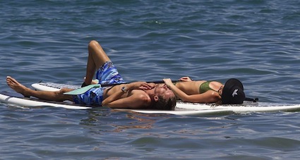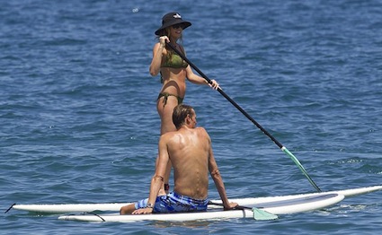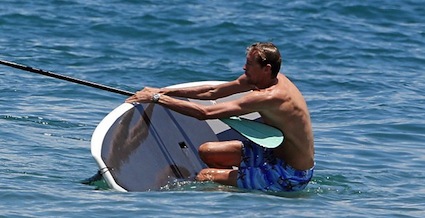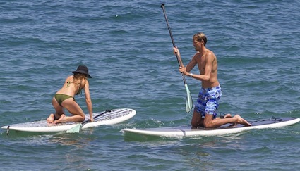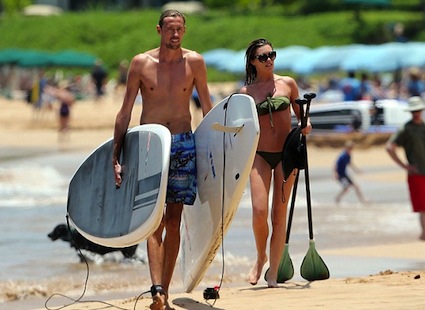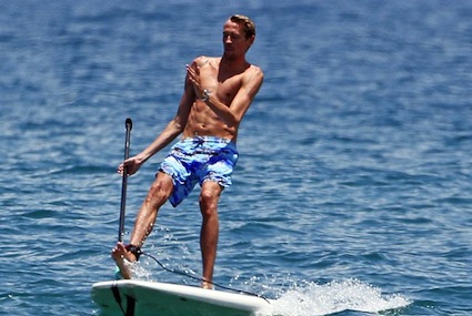 Той е един от най-известните футболисти в Англия, но дори Питър Крауч не може да овладее всеки спорт, с който се захване. Падъл-бордингът май не му се удава много. Поне такова усещане създават снимките от ваканцията му на Хаваите. 201-сантиметровият нападател на Стоук Сити се опитва да впечатли красивата си съпруга Аби Кланси, но, както се вижда, му е трудно да се задържи върху дъската. Блондинката определено се справя по-добре.