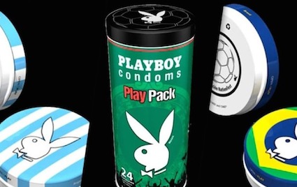 Мондиал 2014 в Бразилия вече чука на вратата, а големите компании се стремят да извлекат възможно най-големи дивиденти от него. Дори такива, които не са пряко свързани с футбола. Като например групата Playboy, която яхна вълната с пускането на пазара на серия презервативи в цветовете на шест от 32-те страни участнички на шампионата. Избраните са Бразилия, Аржентина, Испания, Мексико, Германия и САЩ.