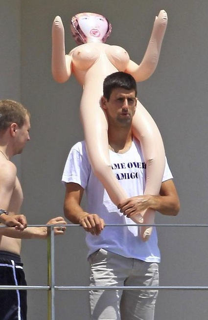 В Ибиса сръбският тенисист изпусна парата, като си поигра с надуваема кукла в басейна. Не мина и без снимки по прашки и женски бански...