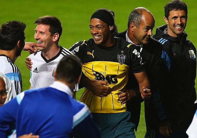 Около 6500 зрители гледаха на живо вчерашната тренировка на Аржентина в Бело Оризонте. Присъствието на Лионел Меси на терена предизвика истинска лудост и част от привържениците слязоха на игрището и прекъснаха заниманието. Един от феновете досущ приличаше на Роналдиньо и се насочи директно към "десетката" на "лос гаучос".