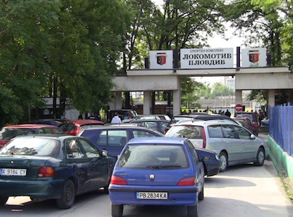 Сайтът plovdivderby.com предава, че входът е блокиран от близо 30 автомобила. Както е известно, днес Емил Велев трябваше да изведе "смърфовете" за първа тренировка.