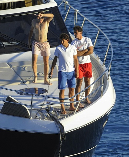 Световният номер едно Рафаел Надал ще атакува титлата на "Уимбъдлън" и затова се подготвя пълноценно не само на корта, но и извън него. Шампионът от "Ролан Гарос" бе забелязан да си отдъхва на луксозна яхта с приятели край бреговете на Майорка. 28-годишният испанец носеше шарен бански и не пропусна да се гмурне във водите на Средиземно море. Носителят на 14 титли от Големия шлем бе в изцяло мъжка компания и не бе придружен от любимата си Сиска.