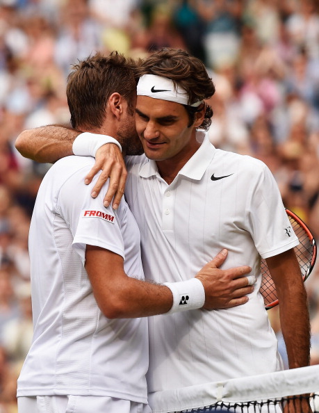 Един пробив се оказа решаващ за изхода на откриващия сет между Федерер и Вавринка. По-младият от двамата швейцарци поведе с 4:1 и до края на частта не позволи обрат. С напредването на двубоя обаче четвъртият в схемата Федерер намери ритъма си на игра и ограничи броя на непредизвиканите грешки. Въпреки че имаше две възможности за пробив във втория сет, седемкратният шампион не се възползва. Така се стигна до тайбрек, който бе спечелен от Федерер със 7:5 точки и резултатът в частите бе изравнен. Именно след приключването на този сет Вавринка поиска и намесата на физиотерапевт. Очевидно той имаше физически проблем, който се отрази на представянето му до края на срещата. Федерер осъществи ранен пробив в третия сет и нямаше никакви трудности да задържи инициативата, а след това и да спечели частта с 6:4. От своя страна, Вавринка нямаше нито един брейкпойнт в сета. Роджър продължи да диктува случващото се на централния корт в ”Ол Ингланд Клъб” и с нов ранен пробив нанесе удар на съперника си в четвъртия сет. Федерер сервираше за победата при 5:4 и именно това бе моментът, в който прояви леко колебание. Вавринка отрази четири мачбола, стигна до брейкпойнт, но въпреки това не събра сили за друго в двубоя. При петата си възможност да затвори мача Федерер не сбърка. Така той направи нова важна крачка към мечтания осми трофей на ”Уимбълдън”.