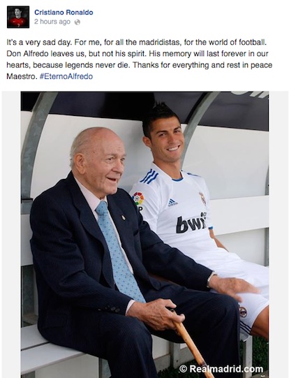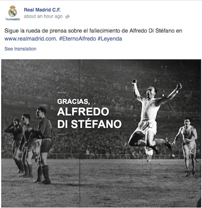 Семейството на Ди Стефано получи съболезнования не само от неговия любим Реал Мадрид, но и от още много клубове. Барселона, Атлетико Мадрид, Милан, Арсенал, Ливърпул и Манчестър Юнайтед само само част от отборите, които чрез социалните мрежи отдадоха почит на легендата на "белия балет".