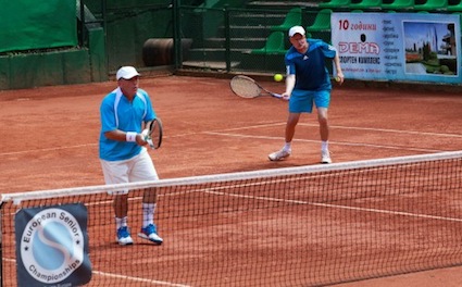 При двойките "40+", Юри Дойчев и Петър Иванов имаха тежък мач срещу фаворитите в тяхната група Герхард Фалке/Пиетро Кампи. Нашите изиграха страхотен мач, но загубиха с 4:6, 4:6. Контузия не позволи на Юри да покаже пълния си потенциал. Часове преди това той спечели полуфиналния си мач срещу словенеца Роберт Лазич и стана първият финалист при мъжете "40+". В спора за титлата днес той ще излезе срещу номер едно в схемата Герхард Фалке.
