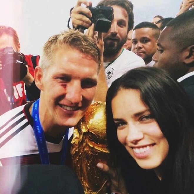 В същото време топмоделът се похвали пред последователите си със снимка с Бастиан Швайнщайгер и световната купа.