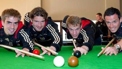 Още на световното първенство в Южна Африка през 2010 година в германския щаб се бяха погрижили футболистите да разполагат с маса за снукър в тренировъчната база. Селекционерът Йоахим Льов бил на мнение, че по този начин възпитаниците му ще могат да си почиват и едновременно с това да скрепяват колектива.