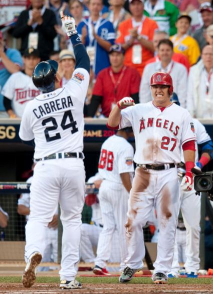 Сякаш встрани от светлината на прожекторите останаха всички чисто бейзболни качества на двубоя в Минеаполис, но все пак шоуто бе изпълнено със страхотни изпълнения. Резултата откри аутфилдерът на Лос Анджелис Ейнджълс Майк Траут с троен хит, който прибра Джитър в 1-вия ининг, а още в същото нападение АЛ поведе и с 3:0, след като 1 аут по-късно първият бейзмен на Детройт Тайгърс Мигел Кабрера изстреля двоен хоумрън.