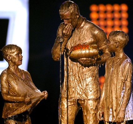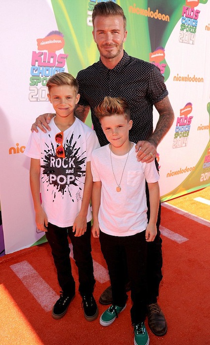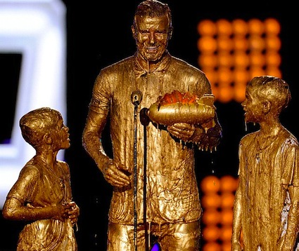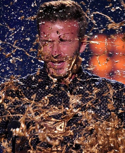 Навремето Дейвид Бекъм беше известен като Goldenballs (Златни топки). Сега този негов прякор отново стана актуален, след като бившият английски национал беше залят от глава до пети със златна слуз. При това "пострада" не само Дейвид, но и двама от синовете му. Всичко това се случи по време на раздаването на спортните награди на детския тв канал Nickeldeon.