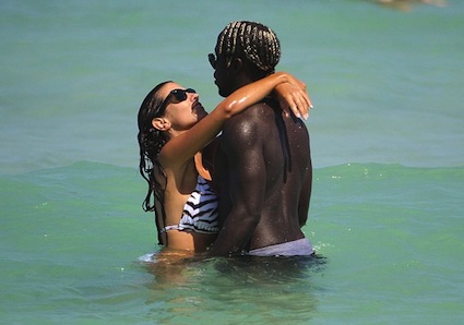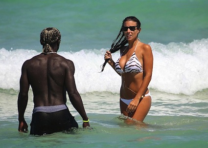 Вчерашният ден в Маями бе горещ. Но още по-гореща беше Людивин - зашеметяващата съпруга на футболната звезда Бакари Саня. Красивата брюнетка накара живакът да скочи, след като се появи на плажа, облечена със секси бански на зебров принт и със златисти детайли. Французойката е майка на две деца, но въпреки това има перфектно тяло, на което може да завиди всяка тийнейджърка. Нейният съпруг обаче също привлече доста погледи на плажа заради страхотното си атлетично тяло.