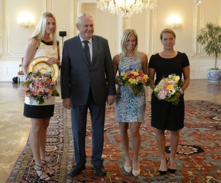 Освен Петра Квитова, чешкият президент прие още Барбора Захлавова-Стрицова и Клара Кукалова.