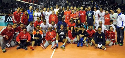 Чакането на феновете в залата не беше напразно. От едната страна на мрежата имаше истински отбор-мечта съставен от млади и опитни играчи. Водени от селекционера на Бразилия Бернардо Резенде на игрището излязоха бившите национали на "Селесао" Маурисио Лима, Налберт Битенкурт и Жилмар Нашименто Тейшейра "Кид" като част от отбора "Приятели на Елер". Към триото се присъединиха настоящите национали на "златистите" Бруно Резенде, Уолъс Де Соуса и Едер Карбонера. От другата страна, с мисията да "развали партито" беше последният клуб на Андре Елер - Кампинас.
