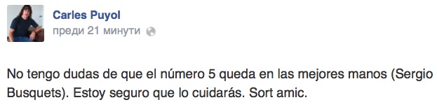 Полузащитникът на Барселона Серхио Бускетс ще наследи легендарния номер "5", оставен от Карлес Пуйол. Капитанът от този сезон ще ръководи спортно-техническите дейности в клуба, а на терена ще се борят други.
