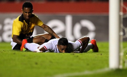 Сега на сърцатия играч му се случи нещо подобно - в двубоя на настоящия му клуб Сао Пауло с Крисиума (1:1) от бразилската Серия "А". Перейра падна лошо на главата си след сблъсък с противников футболист, след което бе изведен от терена, а линейка го чакаше, за да го откара в болница, но уругваецът бързо се завърна на игрището.