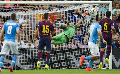 С гол на Блерим Джемайли малко преди края Наполи надви Барселона с 1:0 в контрола, играна в Женева. Лионел Меси и Хавиер Масчерано не пътуваха с Барса за Швейцария, а звездата на Наполи Гонсало Игуаин изненадващо остана на резервната скамейка. Дебют за каталунците направи вратарят Клаудио Браво, но именно бившият страж на Реал Сосиедад беше виновникът за гола, с който италианците стигнаха до победата. Чилиецът позволи топката да мине през ръцете му, но имаше и добри спасявания при удари на Марек Хамшик и Хосе Кайехон.