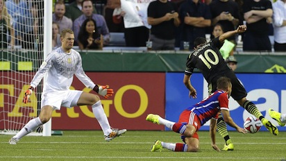 Байерн (Мюнхен) претърпя първа загуба в предсезонната си подготовка. Баварците отстъпиха с 1:2 на сборен отбор от звездите на Мейджър лигата в зрелищен мач, игран пред над 20 000 зрители в Портланд. Роберт Левандовски изведе германския гранд напред в резултата още в 8-ата минута, но Брадли Райт-Филипс и бившият футболист на Байерн Лендън Донован донесоха престижния успех на сборния отбор през второто полувреме.