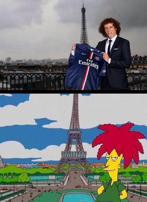 Новото попълнение на Пари Сен Жермен Давид Луиш има своя двойник в анимационния сериал "Семейство Симпсън". Това е героят от комедийното шоу Сайдшоу Боб, който от години радва феновете на предаването с култовите си реплики, песни и екстравагантния си външен вид.