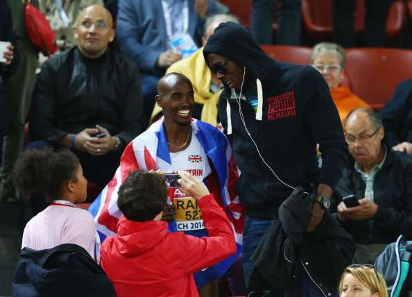 Болт прегърна приятелски Мо Фара след титлата му на 10 000 метра и го поздрави за успеха. Двамата са в отлични отношения е неведнъж са демонстрирали това.