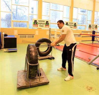 След като го видяхме как налага с бейзболна бухалка гума от камион - упражнение, заимствано от придобилия доста широка популярност през последните години кросфит, сега българският боксьор ни показва още от заниманията си за сила. Тренировъчната програма на Кобрата още хвърляне на медицинска топка, а също така и набирания на лост и "кофички".