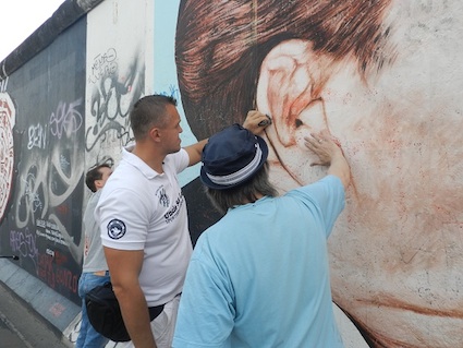 Руският боксьор Евгени Орлов, който е спаринг партньор на Кубрат Пулев, взе участие в необичайна акция, състояла се в East Side Gallery в Берлин. Там известният художник Дмитрий Врубел за трети пък покани всички желаещи да вземат участие в "измиването" на Берлинската стена.