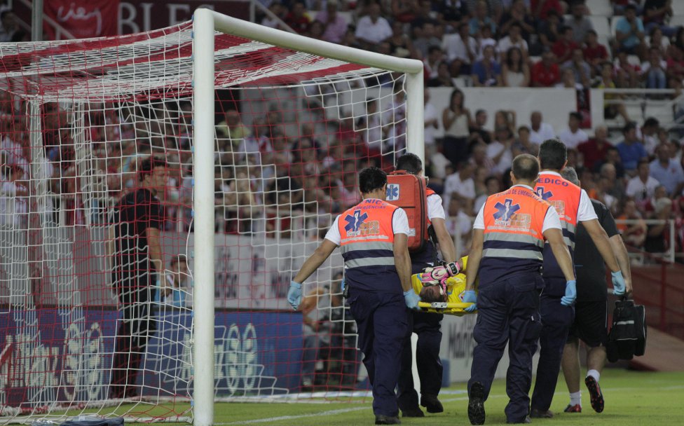 В 16-ата миута стражът на домакините Бето получи контузия в задната част на бедрото и беше заменен от дебютанта Мариано Барбоса. Португалският вратар е петият играч на севилци, който попадна в "лазарета". "Прилепите" разчитаха на силна преса и често отнемаха топката, за да вилнеят на контраатака. В 39-ата стражът на "лос че" едва не загуби топката, пресиран от играч на съперника.