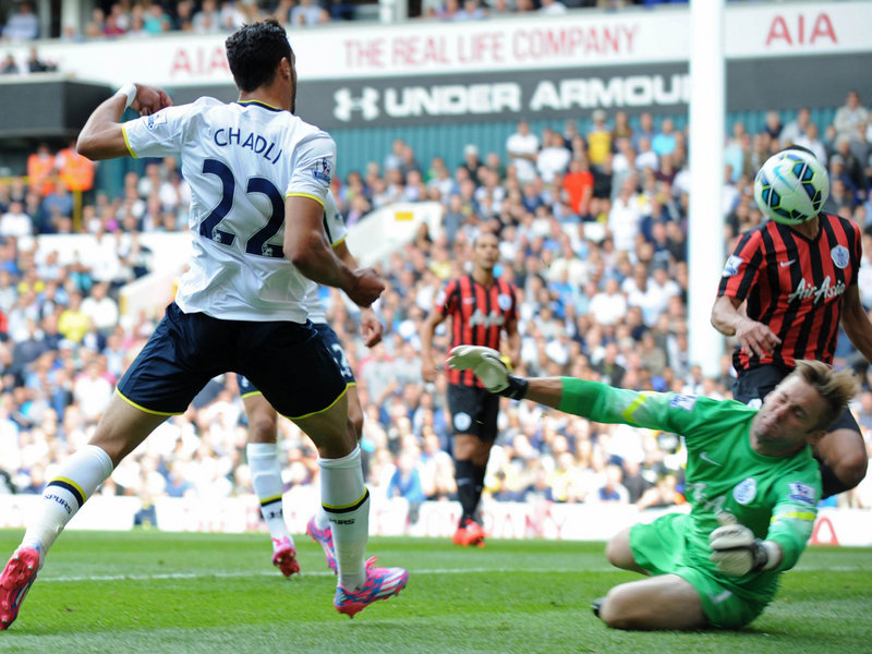 Тимът на Тотнъм е новият лидер във Висшата лига, след като изпревари Челси на върха в класирането с разгром 4:0 над Куинс Парк Рейнджърс. Възпитаниците на Маурисио Почетино не оставиха никакви съмнения кой е по-добрият от двата отбора и с два гола на Насер Шадли и по един от страна на Ерик Дайър и Емануел Адебайор стигнаха до изразителния успех.