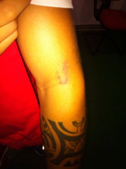 В Интернет вече се появиха и снимки, показващи белег на ръката на потърпевшия Джузепе Де Лука.