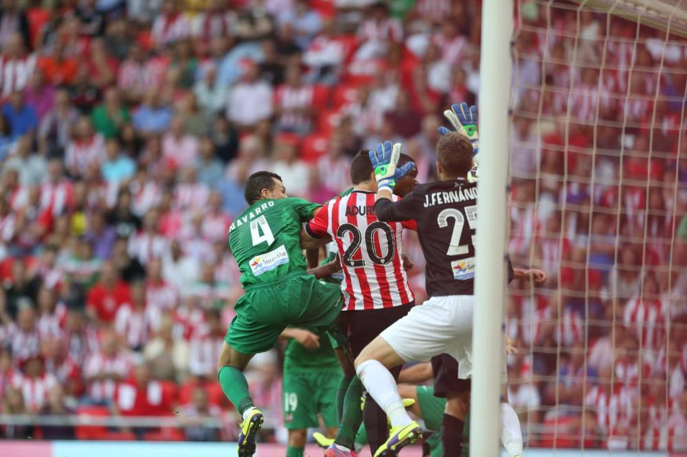 В 26-ата минута Адурис вкара топката в мрежата, но при вдигнат флаг за засада. Ситуацията остана доста спорна. В 32-ата баският нападател все пак откри резултата. Ибай Гомес центрира от корнер и Адурис изпревари всички за точен удар с глава - 1:0. В 45-ата минута Горка Ираисос спаси удар с пета на Давид Барал.