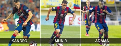 Ръководството на Барселона възнамерява да преподпише с трима от новоизгряващите си звезди от младежкия отбор, за да не ги изпусне с лека ръка, пише "Sport". Става дума за дебютиралите вече таланти Мунир Ел Хадади (19 г.), Сандро Рамирес (19 г.) и Адама Траоре (18 г.). Първите двама станаха популярни в изминалите два кръга на Примера дивисион, след като вкараха по един гол за победите над Виляреал и Елче. Третият пък записа първи минути още в предишния сезон.