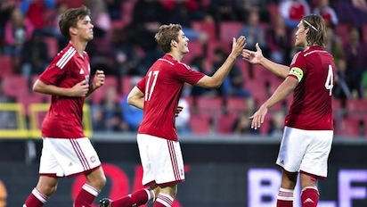 ДАНИЯ: Йенсен, Шолц, Сьоренсен, Вестергаард, Дурмиси, А. Кристиенсен, Л. Кристиенсен, Томсен (60-Зохоре), Бек, Туту (60-Бергреен), Л. Андерсен
