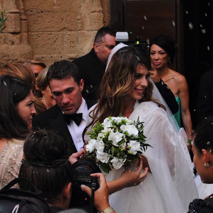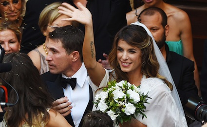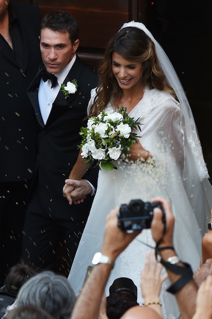 Избраникът на 36-годишната италианка е хирургът-ортопед Брайън Пери (46), с когото красавицата има връзка от началото на тази година. Сватбената церемония се състоя миналата неделя в катедралата "Санта Мария" в Алгеро. Облечена в пищна рокля на Alessandro Angelozzi с 4-метров шлейф и с бял букет в ръце, булката стига до олтара, придружена както повелява традицията от своя баща. Там двамата влюбени си дадоха църковен обет пред около 150 гости.