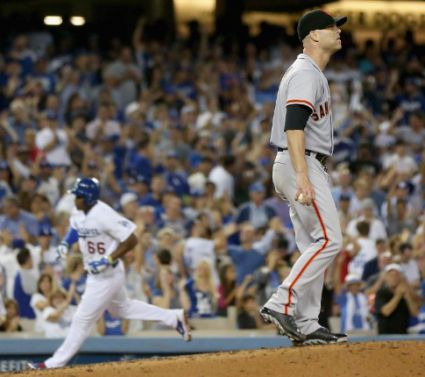 Хуан Урибе батира 2 от 4 с 3 RBI, Карл Крофърд добави 2 хита, 2 RBI, открадната база и 3 отбелязани точки, а Пуиг вкара още една точка с разходка при пълни бази. Започналият на хълма за "гигантите" Тим Хъдсън (L 9-13) бе виновен за 3 точки от 5 хита и слезе победен след 5 ининга и 1/3.