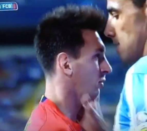 Защитникът на андалуския тим хвана Лео за гушата и аржентинецът падна на земята. Съдията Ернандес Ернандес реши да покаже само жълт картон. Вижте видео.