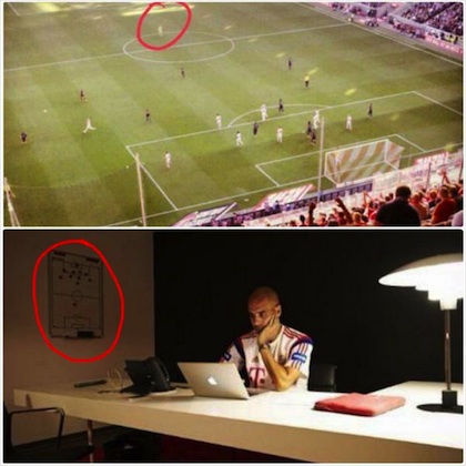 Не бива обаче да се изключва и варианта, че това на стената е схема за игра в защита и тогава самотната точка в другата половина е на централния нападател.![]()